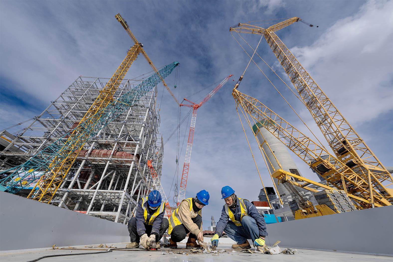 3月10日,新疆油田264万千瓦新能源及配套煤电、碳捕集一体化项目(一期)煤电工程复工,施工人员在锅炉区域开展吊装作业。该项目以400万千瓦光伏为基础,配套建设2×660兆瓦超超临界燃煤机组及年捕集200万吨二氧化碳设施,全面建成后,将成为中国石油单体规模最大的集中式光伏项目、北疆最大的自调峰新能源发电示范工程,以及全国最大“火电+油田”CCUS全产业链示范工程,为区域能源转型和碳产业发展提供重要支撑。